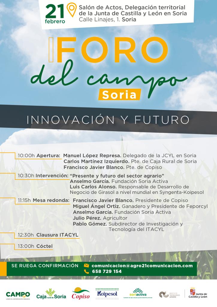 El ITACyL participa en el I Foro del Campo en la provincia de Soria para hablar sobre la innovación desde la Consejería de Agricultura y Ganadería y el futuro del campo regional y el papel fundamental que la innovación tiene en el mismo.