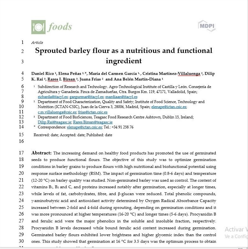 - PAPER 1. Sprouted Barley Flour as a Nutritious and functional Ingredient.