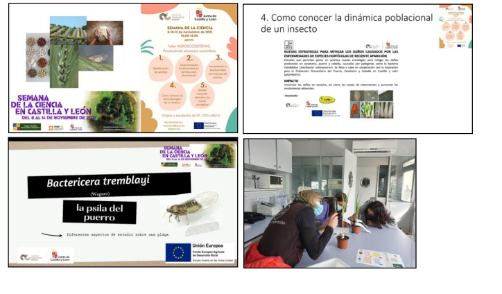 - Taller de divulgación dentro de la Semana de la Ciencia 2021, dirigido a estudiantes de FP, ESO y BACH. ¿Cómo conocer la dinámica poblacional de un insecto".