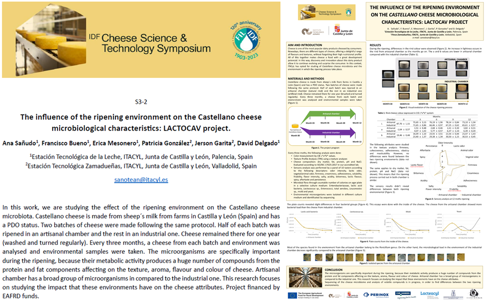 - The influence of the ripening environment on the Castellano cheese microbiological characteristics: LACTOCAV project. Poster presentado en el 9th IDF Cheese Science and Technology Symposium. Bergen (Noruega). Junio 2024.